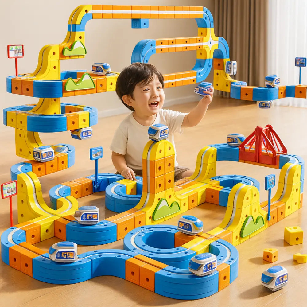 魔法のようなレールを組み立てながら、笑顔があふれるひとときをお届けします。