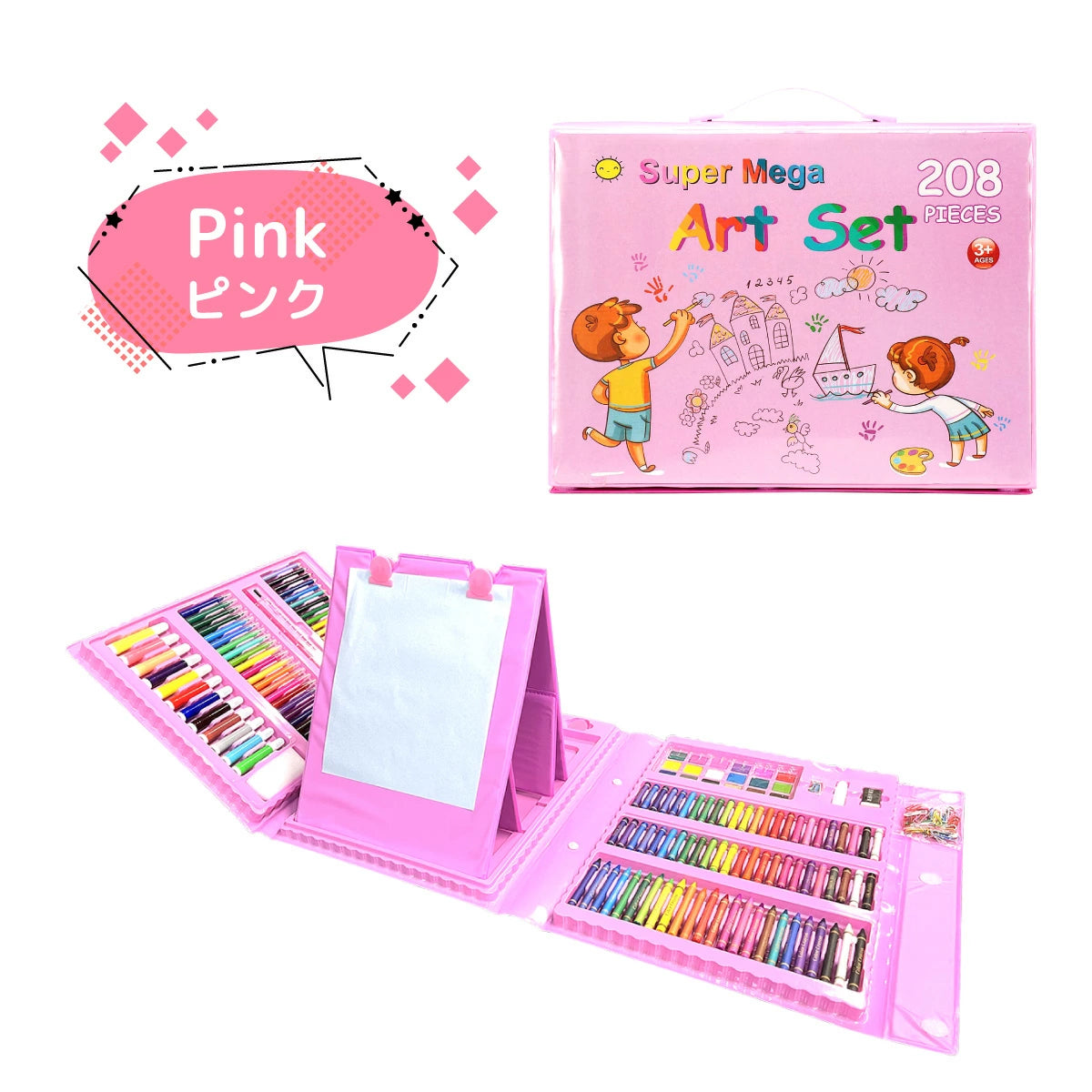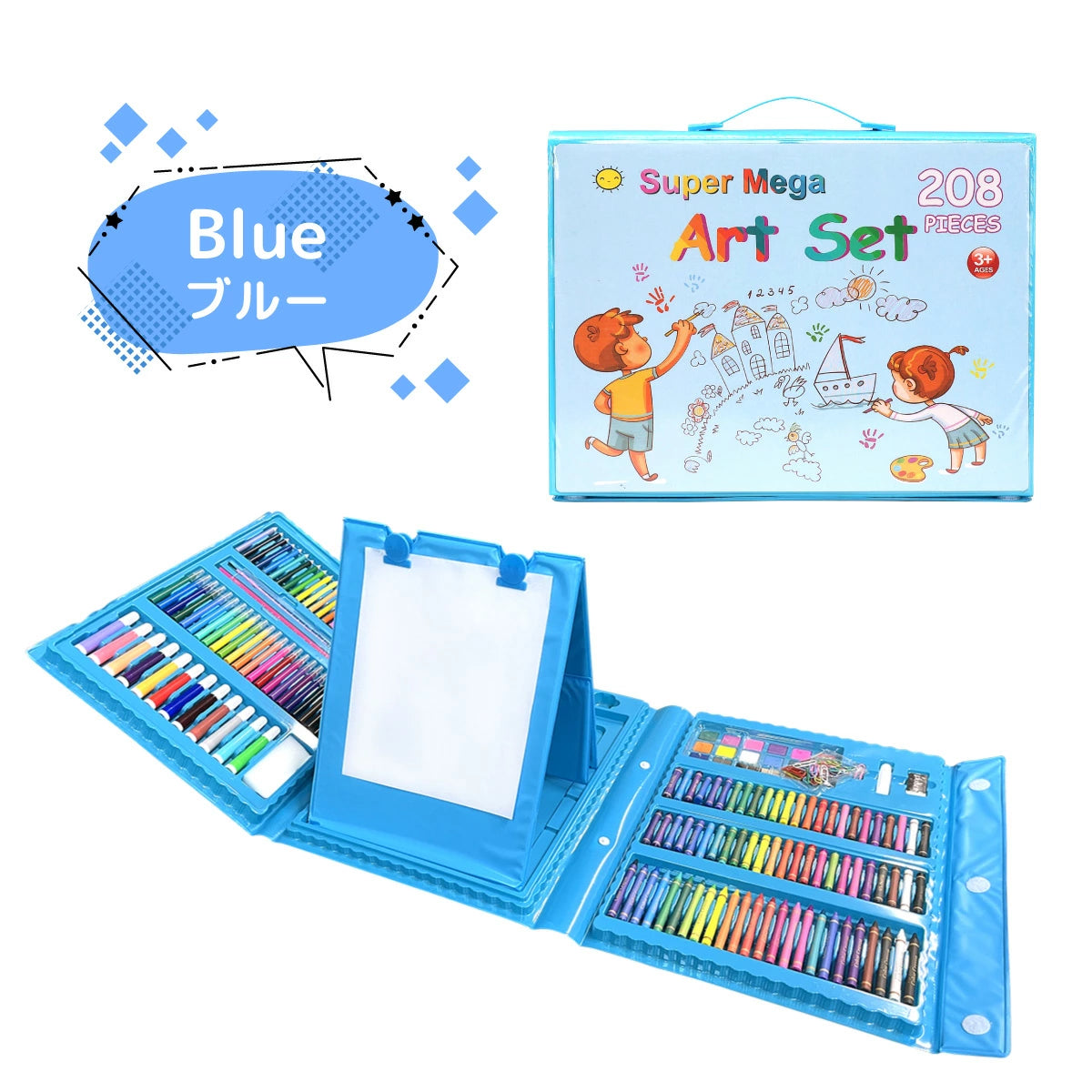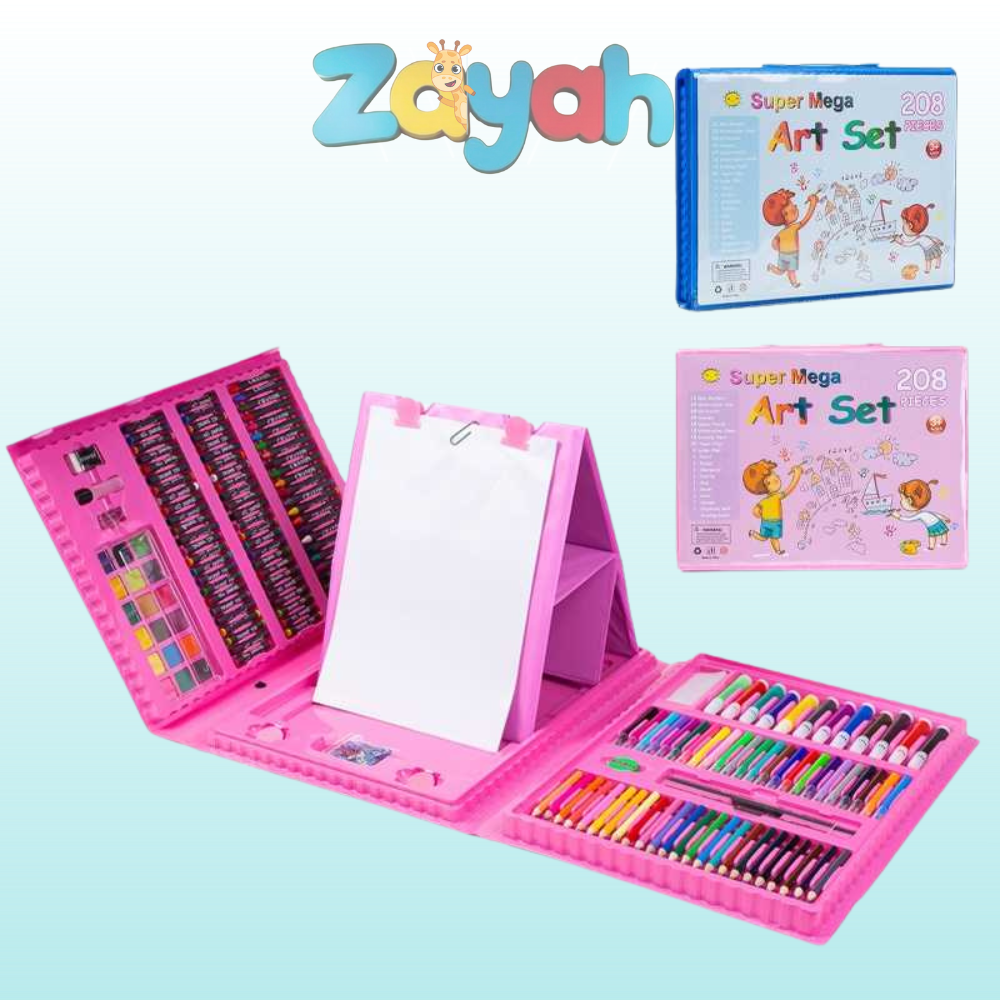 🖍️ 208点の豊富なセット – 色鉛筆、クレヨン、マーカー、水彩、筆、紙などが全部入り!